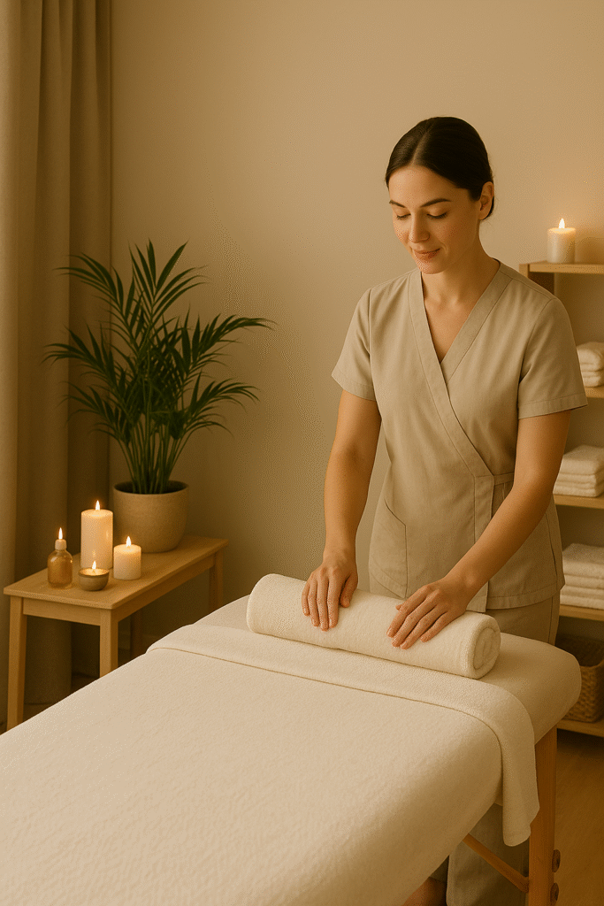 Includes back, legs, feet, arms, hands & scalp + hot towel